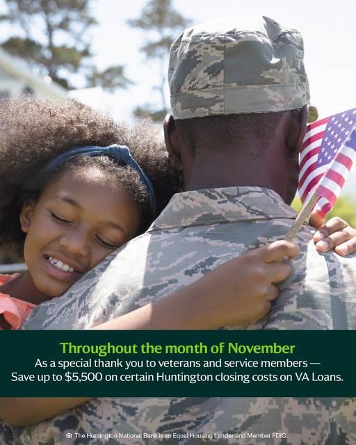Learn More: huntington.com/military-bankingWe believe your commitment deserves meaningful recognition. Veterans and active duty servicemembers, we want to show our thanks by waiving 100% of certain Huntington closing costs up to $5,500 on VA loans throughout the month of November. Learn More: huntington.com/military-banking0 Comments 0 Shares 109 Views 0 Reviews1