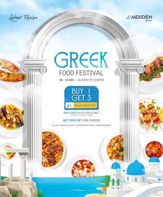 Reserve your table now +880 1766673443 or +880 1966660090𝐓𝐡𝐞 𝐆𝐫𝐞𝐞𝐤 𝐅𝐨𝐨𝐝 𝐅𝐞𝐬𝐭𝐢𝐯𝐚𝐥 arrives, bringing the charm of Santorini and the timeless spirit of Athens to Latest Recipe. A celebration of #Mediterranean affair, crafted by 𝐆𝐮𝐞𝐬𝐭 𝐂𝐡𝐞𝐟 𝐈𝐨𝐚𝐧𝐧𝐢𝐬 𝐆𝐞𝐨𝐫𝐠𝐚𝐤𝐚𝐤𝐢𝐬. Date: Till 15th November Time: 6:30 PM – 11:00 PM Price: BDT 8,950 net per person Enjoy up to 𝐁𝟏𝐆𝟑 offers exclusively for EBL Selective Bank Cardholders. That’s not all, B1G1 and B1G2 offers are also available with 20+ partner banks’ selective cards! Reserve your table now +880 1766673443 or +880 19666600900 Comments 0 Shares 171 Views 0 Reviews1
